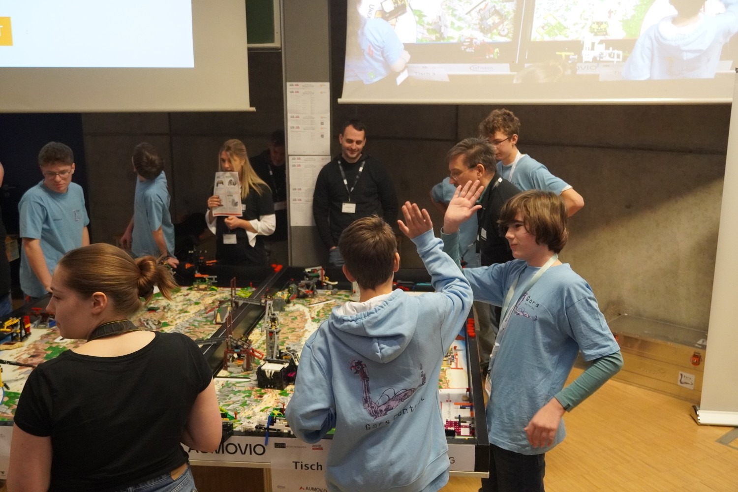 „3-2-1 Voi Gars!“ schallt es durch den großen Hörsaal der OTH Regensburg, wenn wieder ein Roboter eines Garser Teams gestartet wird. Ab diesem Moment bleiben exakt 2:30 Minuten Zeit, um auf einem international standardisierten Spielfeld möglichst viele Aufgaben selbstständig zu lösen. Die FirstLegoLeague findet in diesem Jahr zum fünfzehnten Mal in Regensburg statt. Seit mehreren Jahren sind die Schülerinnen und Schüler des Gymnasiums Gars hier Stammgäste und überzeugen mit ihrem Können. Die beiden Teams sind dabei unterschiedlich zusammengesetzt: GarsControl Senior besteht aus sechs Schülerinnen und Schülern der 9. bis 12. Jahrgangsstufe, während im Junior-Team acht Mitglieder aus den Jahrgangsstufen 6 bis 10 zusammenarbeiten – vier davon zum ersten Mal in diesem Wettbewerb.